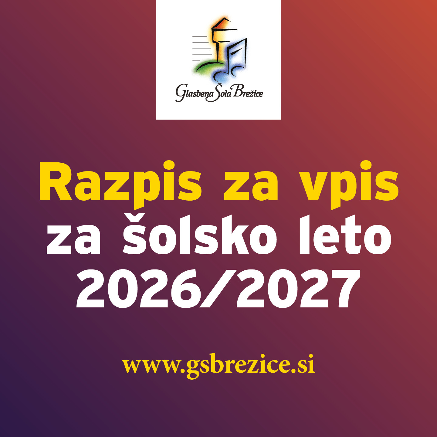 Glasbena šola Brežice objavlja razpis za vpis novih učencev za šolsko leto 2026/2027. Vse zainteresirane prosimo, da na spletni strani GŠ Brežice izpolnite e-prijavnico.