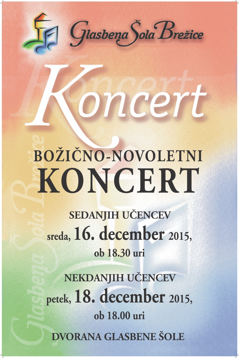 Vljudno vabljeni na predbožični koncert nekdanjih učencev, ki bo v petek, 18. december 2015, ob 18. uri v dvorani Glasbene šole Brežice.